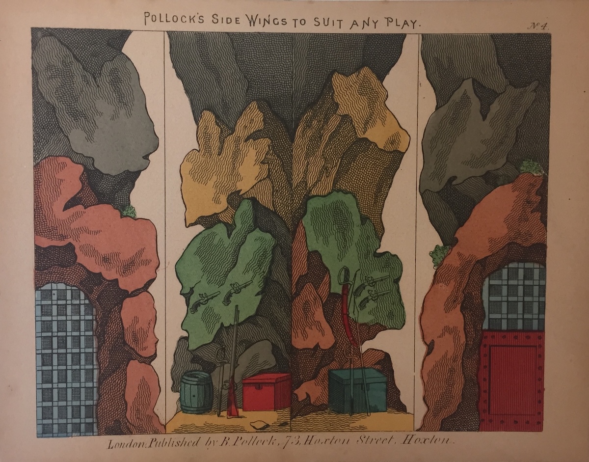 Fig. 6. Benjamin Pollock, Pollock’s Side Wings to Suit any Play, n.d. Hand-colored engraving, c. 17 x 21.5 cm. AS MS THR 944, Houghton Library, Harvard University.